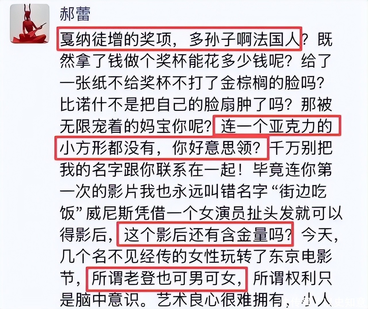 10. 就在东京电影节余震未消之际,郝蕾的一则朋友圈再度点燃战火。